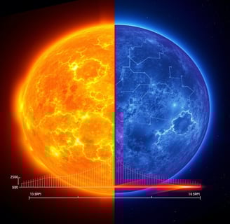 (Prompt Image Description: "A side-by-side of a vibrant sun with sunspots vs. an eerily calm sun, data overlays showing solar radiation drop, sci-fi aesthetic." )
