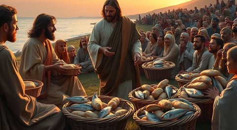 26. Feeding the 4,000 (Matthew 15:29-39, Mark 8:1-10): In a similar vein, the feeding of the 4,000, reported in Matthew and Mark, follows closely behind the earlier miracle of the loaves and fishes and emphasizes Jesus' compassion beyond the Jewish population, as he performed this miracle among the Gentiles. After teaching a large crowd for three days without any food, Jesus felt sympathy for them, not wanting them to faint on their journey home. The disciples, again concerned about the logistics of feeding so many, questioned how they could provide enough food. Jesus asked them what was available and was presented with seven loaves and a few small fish. After giving thanks, he multiplied the food, and once again, all were fed, leaving several baskets of leftovers. This miracle further highlights Jesus’ ability to meet needs and fill emptiness, whether physical or spiritual