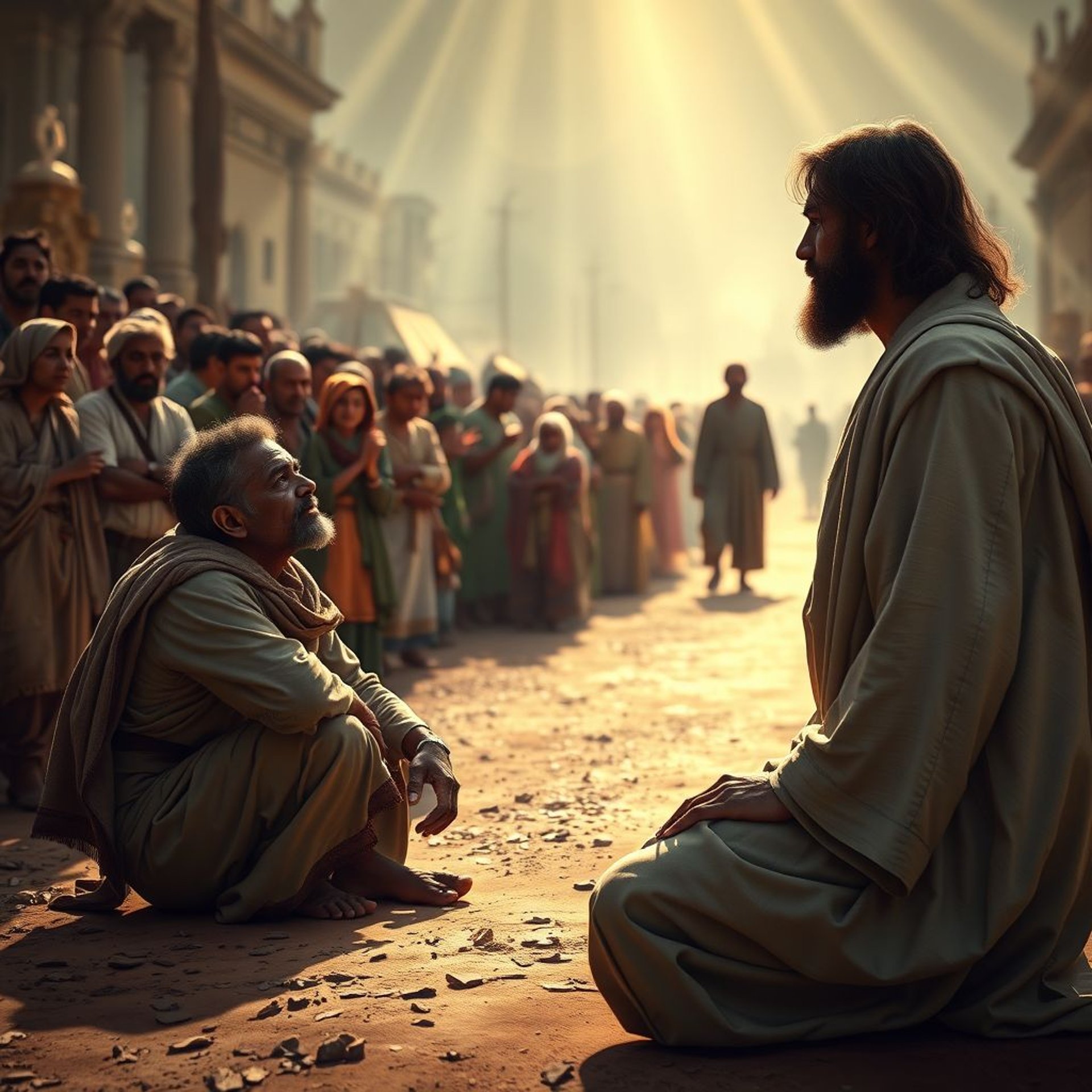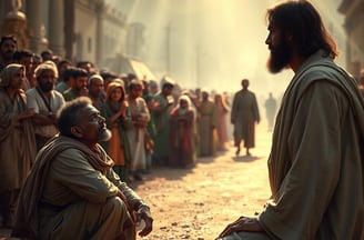 22. Healing Blind Bartimaeus: Bartimaeus is begging along the roadside when he hears that Jesus is on his way. Full of hope, he starts calling for help despite those around him trying to silence his cries. Not deterred, he continues shouting until Jesus stops to pay attention. How utterly ordinary and unassuming the next moment is: Jesus calls Bartimaeus forward and, in three short questions and answers, fully restores his sight. This powerful story demonstrates the incredible impact that faith and perseverance can have in our lives, showing us that sometimes we simply need to cling to hope and courageously ask for help, despite the challenges facing us. Bartimaeus' refusal seems like a great lesson for us as a message of faith.