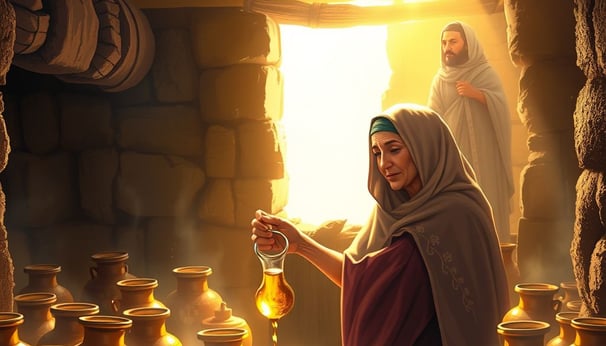 23. Multiplying Oil (2 Kings 4:1-7): The story in 2 Kings 4:1-7 tells us of a great miracle where oil is multiplied. While this story comes prior to Jesus’ ministry, it fits wonderfully with our themes of divine provision and miraculous intervention. A widow who is abandoned after the death of her husband faces a dire situation in which creditors are demanding to take her two sons as payment for her debts. In her time of distress, she turns to the prophet Elisha for assistance. He tells her to borrow as many empty vessels as she can from her neighbors and to pour oil from her one remaining flask into these vessels. When she discovers that the oil pours forth generously and fills every container she brings, her heart fills with joy! In addition to demonstrating the power of faith and obedience, this miracle also serves as a powerful illustration of how God can provide abundantly in our time of need, teaching us that hope and trust can yield miracles.