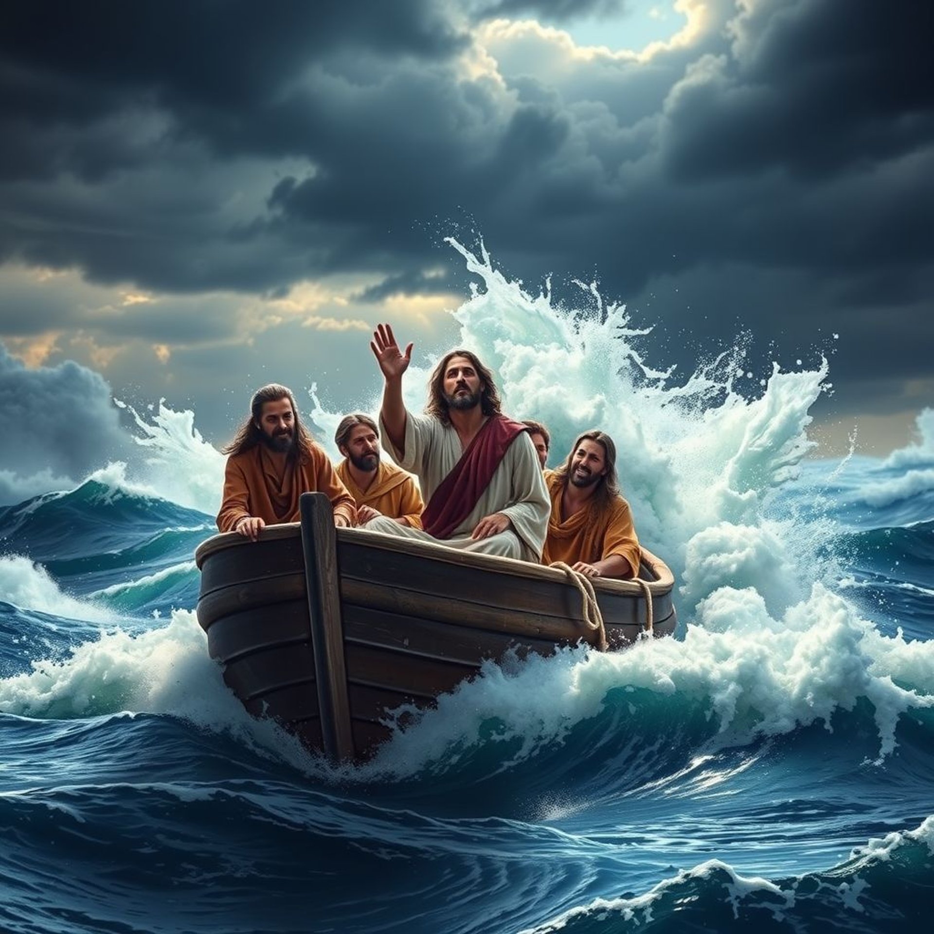 10. Calming the Storm: One of the most striking moments unfolded when Jesus and His disciples found themselves caught in the midst of a violent storm while traversing the Sea of Galilee. The waves roared against their boat, and fear took hold of the disciples' hearts. In the midst of the chaos, Jesus, who had been resting, stirred awake at their desperate cries for help. With a calm authority, He simply commanded, “Peace! Be still!” Instantly, the storm subsided, the winds hushed, and the waters turned tranquil. This miracle left the disciples breathless, pondering the true identity of Jesus, as they realized that even the winds and waves listened to Him. Such an incredible display of power marked a pivotal moment in their journey (Matthew 8:23-27, Mark 4:35-41, Luke 8:22-25).