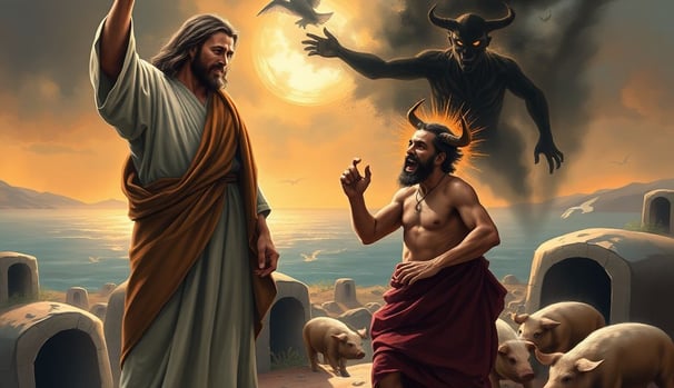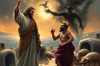 11. Casting Out Demons in Nazareth (Luke 4:33-36): After calming the storm, Jesus made His way to the region of Gerasa, where He met a man who was under the grip of demons. This man had been living in the tombs, tormented and entirely out of control, causing fear among the villagers. Despite their attempts to restrain him, his violent nature proved unmanageable. With compassion and authority, Jesus ordered the unclean spirits to leave him. They exited in a dramatic fashion, rushing into a herd of pigs that promptly plunged into the sea. The man was left transformed and healed, becoming a living testament to Jesus’ immense power and mercy as he shared his remarkable story with anyone who would listen. His experience became a beacon of hope for many in the region (Matthew 8:28-34, Mark 5:1-20, Luke 8:26-39). The impact of this miracle reverberated throughout Gerasa.