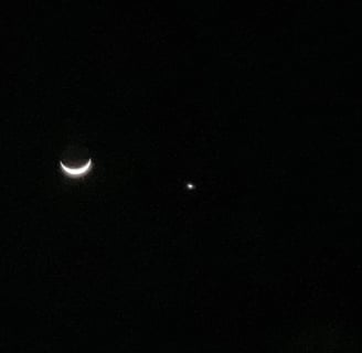 If you want to see Mercury, look toward the west just after the Sun goes down. It will look like a bright, steady dot next to the thin crescent Moon. Planets like Mercury shine with a steady light while stars sparkle. However, if the sky is clear, you can see Mercury with just your eyes. Binoculars or a small telescope will help.